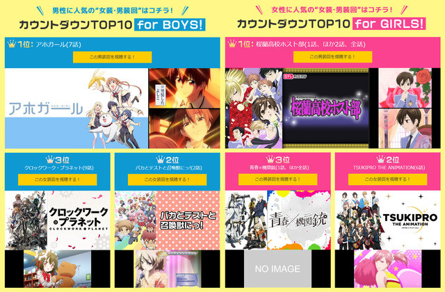 「dアニメストア」女装・男装回ランキング