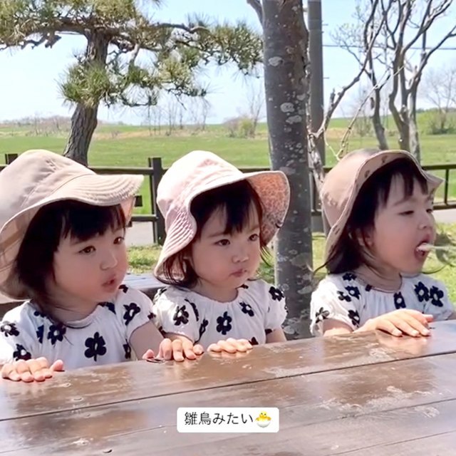 順番にアイスを食べる3つ子ちゃん(Instagram/@_325_clover_より) ベンチに横一列で座る2歳の3つ子の女の子に、お父さんがスプーンで順番にアイスを食べさせてあげる動画「アイスを待っている姿が雛鳥みたいでめんこいです」が、39.4万回再生を超える反響を呼んだ。まるでエサを待つ雛鳥かのような姿に、「可愛いの大渋滞」「行儀良く待つ小鳥ちゃん達」「ずっと見ていられます」などとコメントが寄せられた。動画を撮影した当時の状況や3つ子の普段の様子などについて、お母さんに話を聞いた。