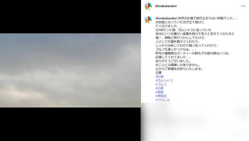 名前は出さなかったが「LLPWだった頃、ガムシャラに走っていた自分にいつも暖かい言葉を掛けて色々と支えてくれた方と 唯一、神取と呼びつけにしてたけど、人としての道を教えてくれたり、しっかり分析してわかり易く叱ってくれたり、ゴルフも楽しかったなぁ、、、昨年の還暦祭のパーティーの時もその前の時もいつも、応援してくれてました、、」と故人をしのんだ。