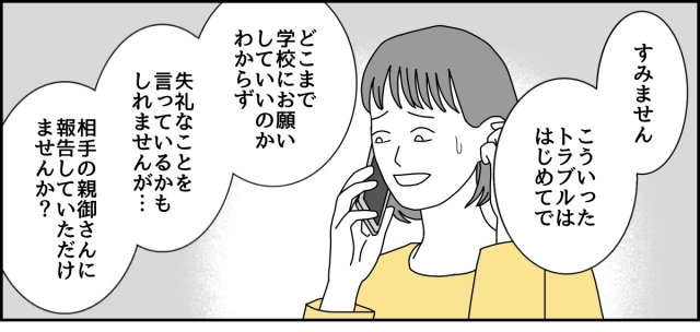 子どもたちのことにどこまで口出しをしていいかわかりませんでしたが、先生はイヤがることもなく相手に伝えてくれると言ってくれたので、先生を信じてお任せすることにしました。