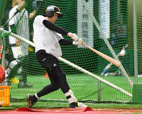ソフトバンク対日本ハム 試合前、フリー打撃を行うソフトバンク川瀬(撮影・岩下翔太)