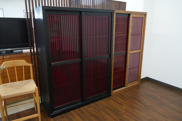浅川木工は主にタンスや棚などの「箱物」を生産している。細い棒を使った格子状のデザインが特徴だ。格子の部分には他社では扱いづらい細い廃材を活用しているため、原料を安く仕入れられるという。