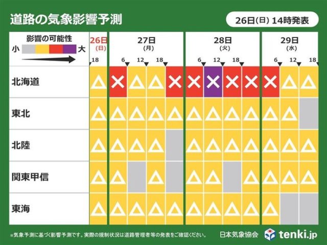 ÌÀÆü27Æü¤«¤é28Æü(²Ð)¤Ë¤«¤±¤Æ¡¢ÆüËÜÉÕ¶á¤ÏÀ¾¹âÅìÄã¤ÎÅß·¿¤Îµ¤°µÇÛÃ֤Ȥʤꡢµ¨ÀáÉ÷¤¬¶¯¤Þ¤ë¸«¹þ¤ß¤Ç¤¹¡£Ë̳¤Æ»¤Ç¤Ï˽É÷¤¬¿á¤¹Ó¤ì¤ë¤ª¤½¤ì¤¬¤¢¤ê¡¢¸òÄ̤ؤαƶÁ¤ËÃí°Õ¤¬É¬ÍפǤ¹¡£´ØÅì¤Ê¤É¤Ç¤Ï¡¢º£¤Î¤È¤³¤íÂ礤ʱƶÁ¤Ï¤Ê¤µ¤½¤¦¤Ç¤¹¤¬¡¢Åß·¿¤Îµ¤°µÇÛÃ֤ζ¯¤Þ¤ê¶ñ¹ç¤Ë¤è¤Ã¤Æ¤Ï±Æ¶Á¤¬½Ð¤Æ¤¯¤ë²ÄǽÀ¤â¤¢¤ê¤Þ¤¹¡£