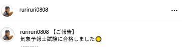 声優吉宮るりが29日までに、自身のインスタグラムを更新。気象予報士試験に合格したことを報告した。
