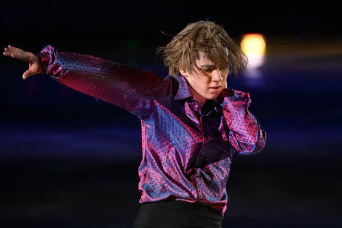 午前の初回に続き、2度目の公演となった午後の部がメディアに公開され、宇野さんが現役時代に使用したプログラムを中心に出演者が19曲を舞った。宇野さんは2022−23シーズンのショートプログラム(SP)で使用した「Gravity」などソロナンバーをはじめ、終盤には個人銅メダルを獲得した22年北京五輪シーズンのフリー「ボレロ」を全員で演じるなど多くの見せ場をつくった。