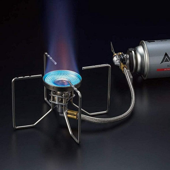 多数の炎口から出る火足の短い炎と、バーナーヘッド形状の工夫により、高い耐風性能を発揮。低温時に火力を安定させるマイクロレギュレーターを搭載し、CB缶の弱点をカバーします。