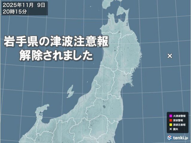 岩手県に発表されていた「津波注意報」は、9日午後8時15分に解除されました。