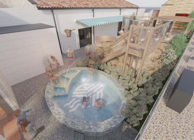 そして専用サウナ着や水着で楽しめる広大な男女共用屋外エリア「WELLNESS GARDEN」では、サウナ室を眺めながらゆったりと浸かれるくつろぎ湯、開放感あふれる水風呂に加え、店舗ロゴを底面にあしらった深さ120cmのプールを用意。水着でゆったりとクールダウンを楽しめる。