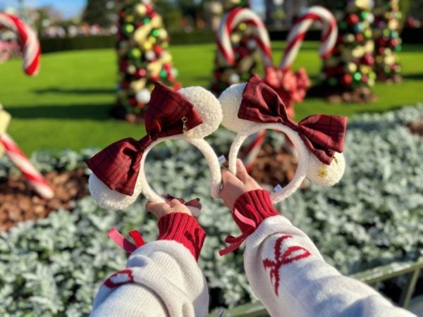 パーク内のデコレーションはどこもかわいくて、背景にするだけでテンションが上がるスポットばかり。そんなデコレーションを前に、友達やパートナーとカチューシャを前に出して合わせる撮り方がじわじわ人気を集めています。そのシルエットでクリスマス気分が伝わる、雰囲気重視の一枚に仕上がります。