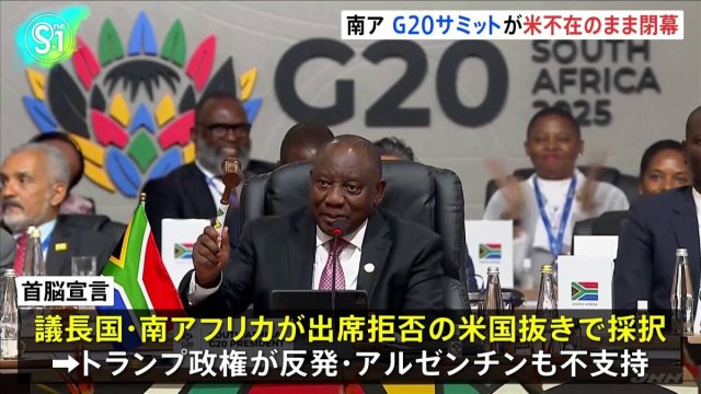 議長国の南アフリカは出席を拒否したアメリカ抜きで首脳宣言を採択しましたが、これに対しトランプ政権が反発を強めているほか、アルゼンチンも不支持を表明するなど足並みの乱れがあらわになりました。