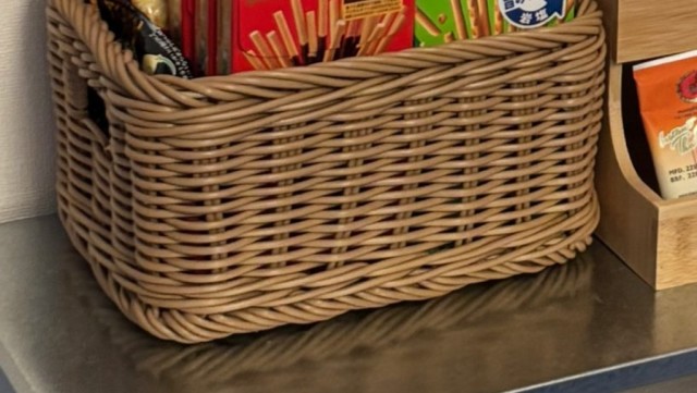 スペースに並ぶ小ぶりな棚は、ティーバッグやインスタントコーヒー、手軽につまめるお菓子が満載。箱買いの駄菓子もあって、いつでもくつろげそうです。