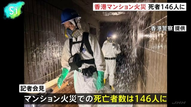香港で発生したマンション火災。警察などはきのう、死者数が146人に増えたと発表しました。
