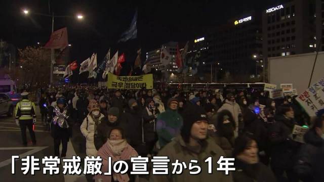 韓国の「非常戒厳」宣言からきのうで1年。ソウルで市民らがデモ行進し、「民主主義を脅かされたことを忘れないように」などと訴えました。