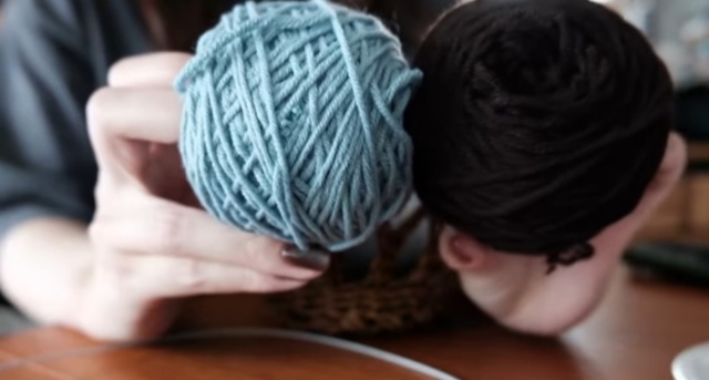使用する毛糸は2種類。ブルーとブラウンのコットンアクリルの毛糸です。投稿者さんは棒針編みで編むことにしましたが、他にかぎ針編みのパターンもあるそうです。