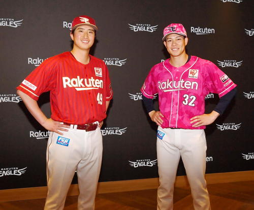 セカンドユニホームのモデル役を務めた西垣雅矢投手(26)は「なかなか今までにストライプのユニホームを着ることがなかったので新鮮な気持ちでまたシーズンに入っていけるかなと思います」。サードユニホームを着た中島大輔外野手(24)は「個人的にピンクすごい去年好きだったので、それに6県の形も加えられて、進化したユニホームで気持ち新たに頑張りたいなと思います」と力を込めた。