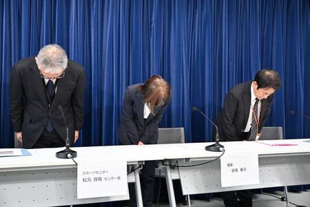 職員の逮捕を受け、記者会見で謝罪するNHKの安保華子理事(中央)ら=6日午後、東京都渋谷区 東京都渋谷区の路上を通行中の女性に性的暴行を加えたとして、警視庁渋谷署は6日までに、不同意性交容疑で、NHK報道局スポーツセンターのチーフディレクター、中元健介容疑者(50)=目黒区目黒本町=を逮捕した。「女性の腕を押さえたり脅迫はしていません」と話し、一部否認しているという。