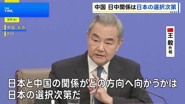 中国の王毅外相が全人代=全国人民代表大会に合わせて会見を行い、日中関係について「日本の選択次第だ」とけん制しました。アメリカに対しては、イランへの軍事行動の即時停止を求める一方、名指しで非難することは避けました。