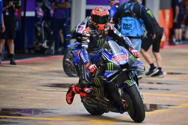 22年ぶりにブラジルで開催される今大会。MotoGPクラスのフリー走行1回目は、他クラスのセッション中に降った雨が残るハーフウエットコンディションで始まった。クアルタラロはレインタイヤで19周を走行したのち、最終盤にスリックタイヤを投入。しかし自己ベストタイムの1分29秒498を更新できず、22番手で午前を終えた。リンスも同じくレインタイヤで自己ベストを記録し、1分27秒948で14番手となった。