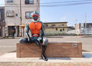 石巻に仮面ライダーアマゾンのベンチアート新設 アカレンジャーも復活