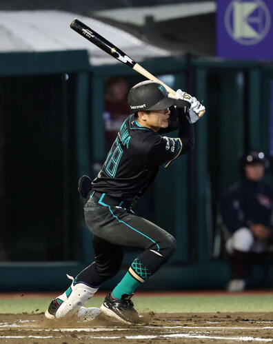 1点を追う6回無死一、三塁でカウント1−1から楽天内の高めのスプリットを捉え中前適時打。自身はスタメン出場5試合連続安打で「久々に(三塁走者で)矢沢がランナーとして塁にいたので絶対にかえそうと思っていました」。一塁走者は中前打で出塁した水野、ミレニアム小兵トリオでかき回した。