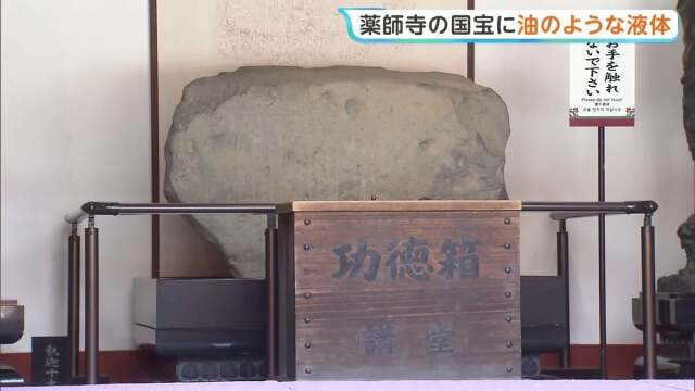 奈良市にある世界遺産・薬師寺できのう、国宝の「仏足石」に油のようなものがかけられた跡が見つかりました。