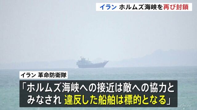 イランの革命防衛隊は国営メディアを通じて声明を発表し、ホルムズ海峡を18日午後から再び封鎖すると主張しました。