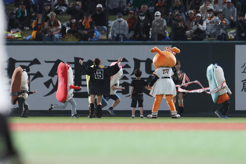 ◆すしレース 4回表終了時にイニング間イベントとして、米国の「ホットドッグレース」のような「すしレース」を開催している。ファン参加型のアクティベーションで出場者は「江戸前スーシーズ」に扮(ふん)して競走する。メンバーはマグロ、コハダ、タマゴ、エビ、アナゴの5貫に加え、今季から新メンバーのイカ、ウニ、芽ネギ、かんぴょうの計9貫。