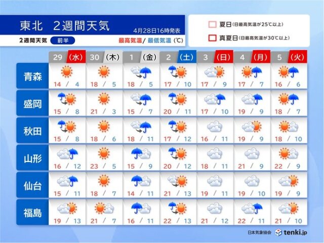 µ¤²¹¤â¾å¤¬¤ëͽÁۤǡ¢»³·Á¤äÊ¡Åç¤Ç¤ÏºÇ¹âµ¤²¹¤¬25¡î°Ê¾å¤Î²ÆÆü¤È¤Ê¤ëÆü¤â¤¢¤ë¤Ç¤·¤ç¤¦¡£ÅìËÌËÌÉô¤Ç¤â20¡î¤òͤ¨¤ëÆü¤¬Â¿¤¯¡¢Æ°¤¯¤È´À¤Ð¤àÍÛµ¤¤È¤Ê¤ê¤½¤¦¤Ç¤¹¡£°ìÊý¡¢Ä«Èդϵ¤²¹¤¬°ì·åÂæ¤Þ¤Ç²¼¤¬¤ëÆü¤â¤¢¤ê¡¢°ìÆü¤Î´¨ÃȺ¹¤¬Â礤¯¤Ê¤ë¤Ç¤·¤ç¤¦¡£ÉþÁõ¤Ê¤É¤Ç¾å¼ê¤¯Ä´À᤹¤ë¤Ê¤É¤·¤Æ¡¢ÂÎÄ´´ÉÍý¤Ë¤Ï¤ªµ¤¤òÉÕ¤±²¼¤µ¤¤¡£