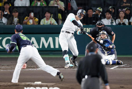 阪神佐藤輝明内野手(26)が自身初のシーズン100打点を達成した。0−0の初回1死三塁。先発青柳から高々と左翼に上がった先制犠飛。節目の打点を挙げた。97打点で迎えた9月26日中日戦で、2安打2打点の活躍を見せて大台に王手。同戦以降も2試合連続で安打を放ちながら、遠かった1打点だ。3番に座って臨んだ今季最終戦で決めてみせた。