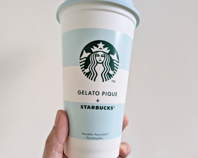 販売初日の午前中には完売となった「gelato pique ボーダーリユーザブルカップ ミントグリーン 473ml」は、ジェラピケらしい優しいパステルカラーで描かれた大人かわいいデザイン。ジェラピケのふわもこな世界観に、スタバが優しく寄り添っているバランス感がたまりません。