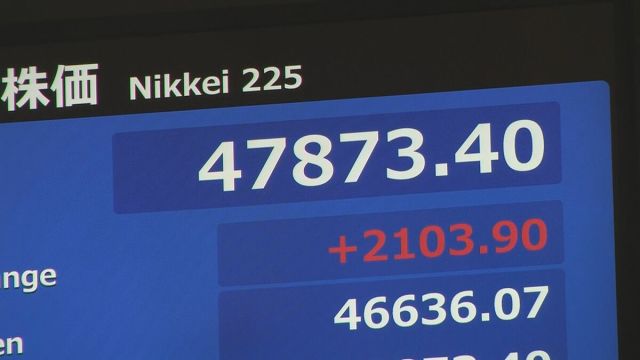 今日の東京株式市場で日経平均株価は一時2100円以上値上がりし取引時間中の最高値を更新しました。節目の4万6000円を上回って4万7000円台に突入するのは史上初めてです。