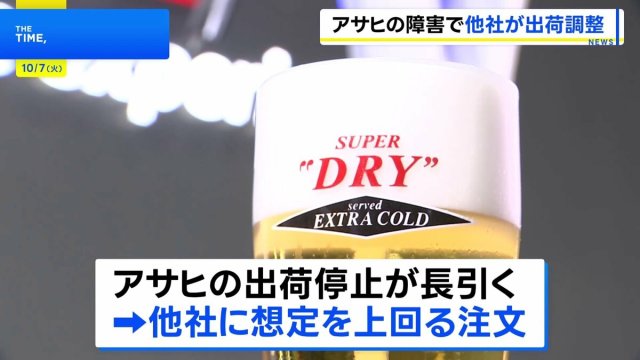 アサヒビールの出荷停止が長引いている影響で、他のビールメーカーへの注文が急増し、各社が出荷調整を迫られていることが分かりました。