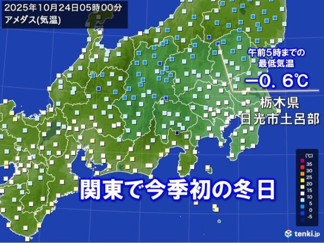【速報】関東で今季初の冬日(最低気温0度未満) 今日24日 栃木県日光市土呂部で