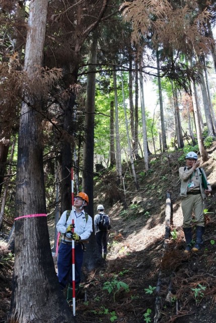 市によると、2月末の大規模山林火災と2月中旬に発生した山火事について、衛星画像や現地調査で焼損木や被害程度を確認した。全ての焼損木に被害に応じて森林保険の保険金が支払われると仮定し、その総額の59億3900万円を被害額とした。内訳は人工林が54億3000万円、天然林が5億900万円だった。