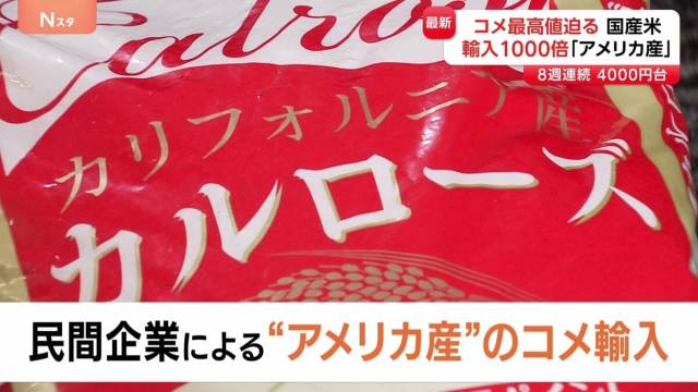 さきほど発表されたコメの平均価格は8週連続で4000円台となり、最高値に迫っています。「国産米」の高止まりが続くなか、民間企業によるコメの輸入が急増しています。