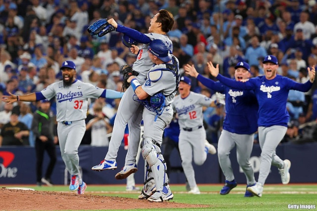 ワールドシリーズ(WS)第7戦が1日(日本時間2日)に行われ、延長11回の激闘を制したドジャースが対戦成績を4勝3敗とし、球団初となるWS連覇を成し遂げた。9回途中から救援登板し、2回2/3を無失点に抑えた山本由伸投手(27)は今シリーズ3勝目をマーク。「1番・投手兼指名打者」でフル出場した大谷翔平選手(31)は3回5安打3失点で降板したものの、打撃では2安打1四球で3出塁をマークした。