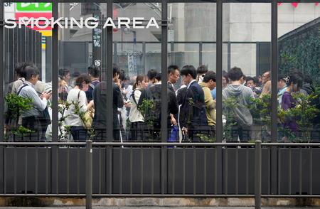 喫煙エリアでたばこを吸う人=資料(EPA時事)