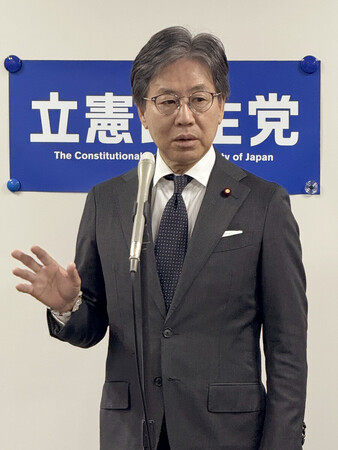 取材に応じる立憲民主党の安住淳幹事長=26日午後、東京・永田町の同党本部
