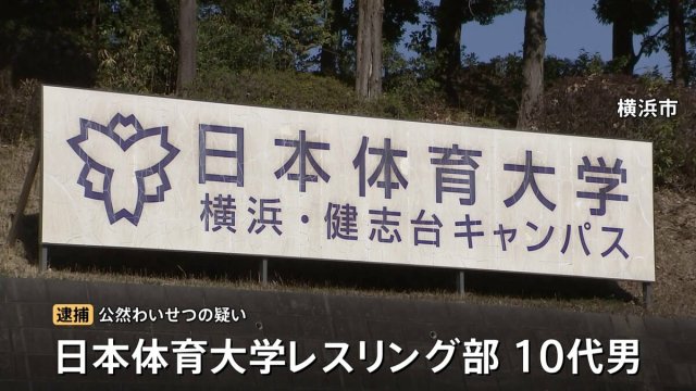 捜査関係者によりますと、公然わいせつの疑いで逮捕されたのは日本体育大学レスリング部の10代の男です。男は先月下旬、横浜市青葉区のコンビニで下半身を露出した疑いがもたれています。
