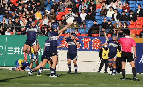 決勝前に指揮官は「大阪の3校とやって相当疲弊している。ちょっと重い感じがある」と激戦のダメージを心配していたが、厳しい練習を乗り越えてきたフィフティーンが最後まで体を張り、堂々の3大会連続で頂点に立った。【永田淳】