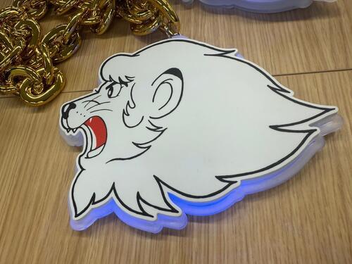 球団マスコット「レオ」の顔に金色の鎖がジャラジャラついたグッズ。「実用性がない」と一刀両断されながら、昨季は多数の西武ファンがこれを付けて跳びはねて応援した。