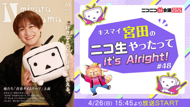 今年で15年目を迎える「ニコニコ」の超巨大イベント『ニコニコ超会議2026』の3つの企画に宮田が参加。「超コスプレ」ステージでは、宮田がコスプレ衣装で登場してトークを展開する「宮田俊哉のコスプレトークショー」を実施する。