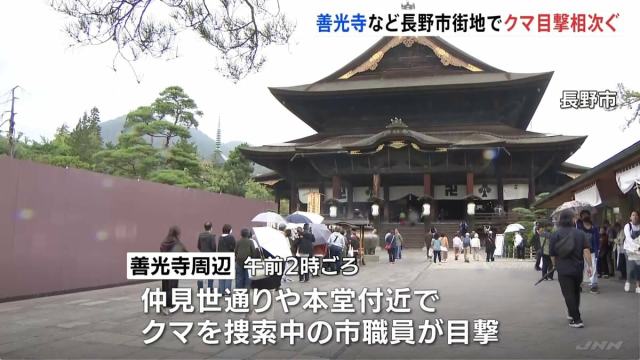 長野市の善光寺周辺では、午前2時ごろ、仲見世通りや本堂付近で、住民の連絡を受けて捜索していた市の職員がクマを目撃しました。