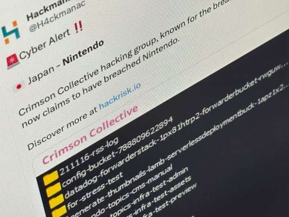 Hackmanacのポストによると「Red Hatへの侵害で知られるハッキンググループCrimson Collectiveが、今度は任天堂への侵害を行ったと主張している」という。添付された写真には「nintendo topics」関連のディレクトリーとみられる画像も添付されているが、真偽は不明。