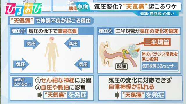 【写真を見る】『天気痛』はなぜ起こる?気圧低下で頭痛・腹痛…メカニズムと対策を専門家に聞く【ひるおび】