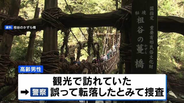 男性はかずら橋に観光で訪れていて、警察は男性が誤って転落したとみて調べています。