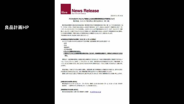 無印良品の運営会社は、アスクルへのサイバー攻撃の影響で、ネットストアの顧客情報が外部に流出した可能性があると発表しました。