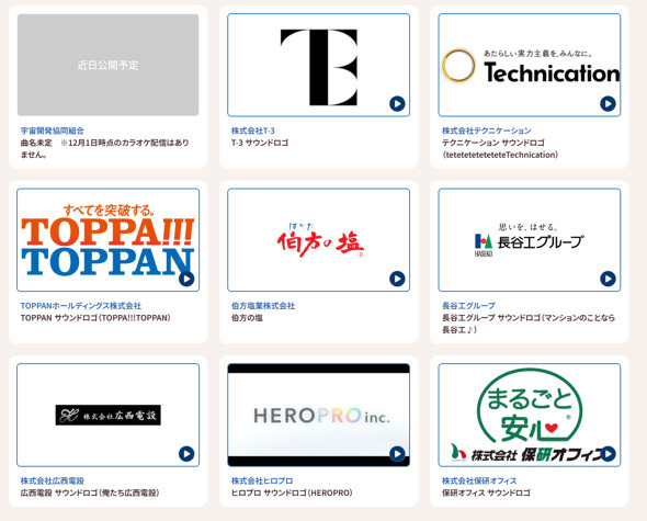 配信されるのは、セガ、伯方の塩の他、クラシアンの「くらし安心クラシアン」、亀田製菓の「亀田のあられ、おせんべい♪」、長谷工グループの「マンションのことなら長谷工 タラララッタ♪」など。