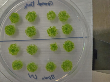 宇宙空間にさらされた後、地上で発芽したコケの胞子(北海道大のメンチャンヒョン博士研究員ら提供)