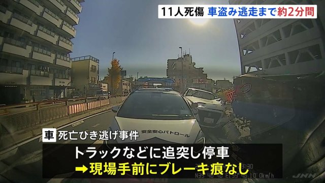 東京・足立区で乗用車が歩行者をはね、11人が死傷したひき逃げ事件で、事件を起こした車を自動車販売店から盗んだとして逮捕された男が、およそ2分間で車を盗んでいたことがわかりました。